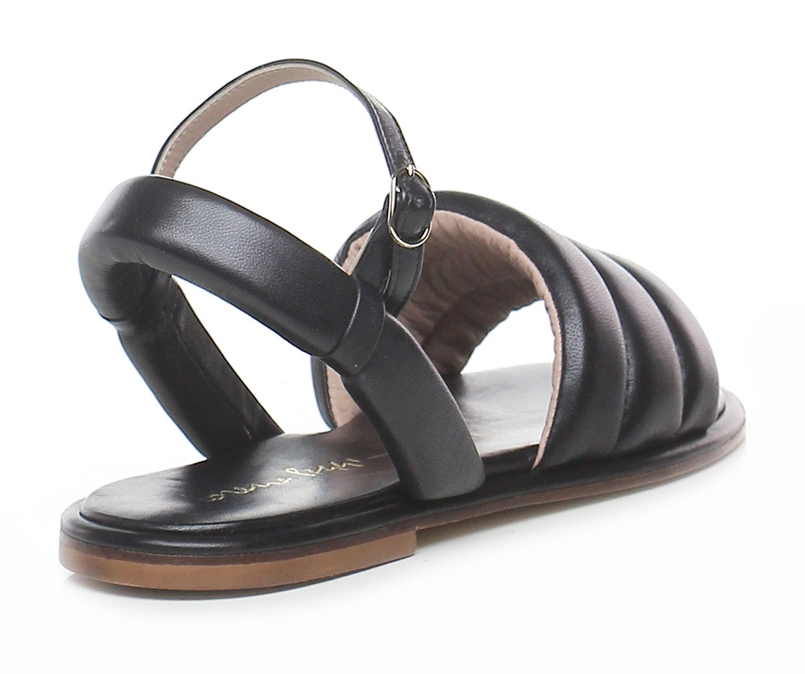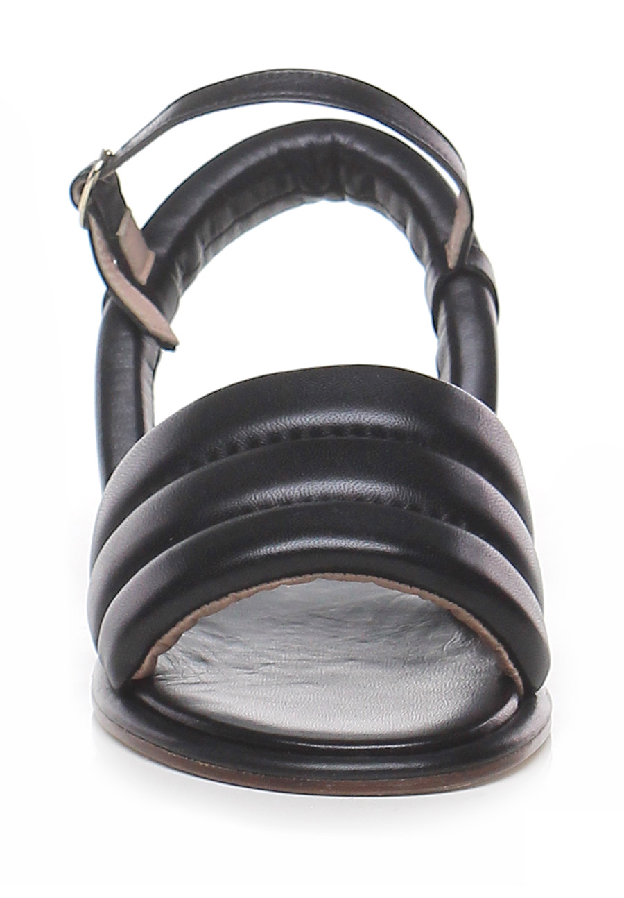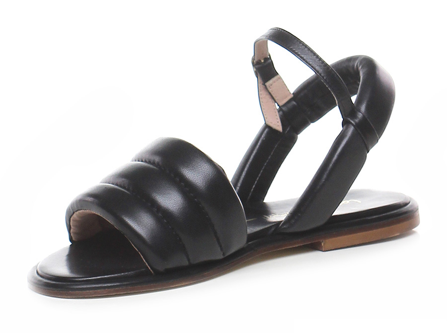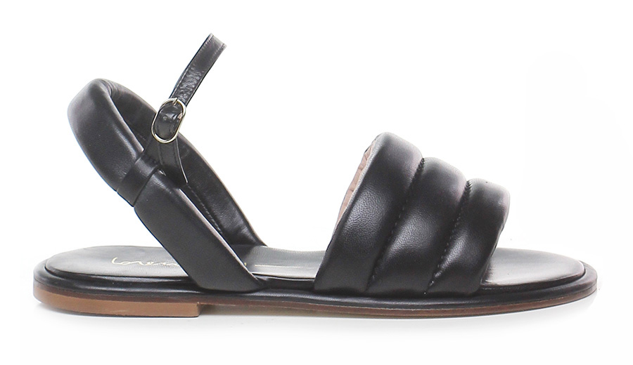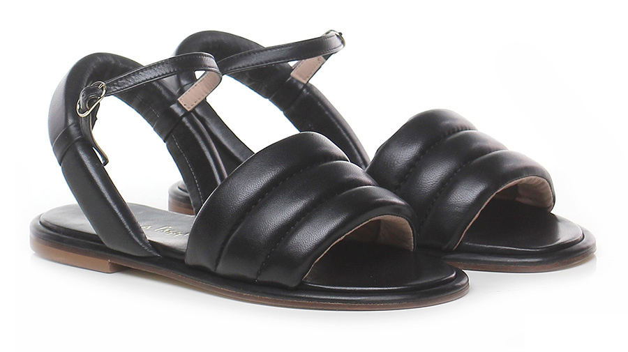 Low sandal in padded leather with ankle strap, leather sole. Heel 10.