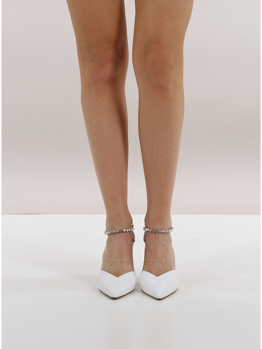 Leather shoe with ankle strap with swarovski. Leather and rubber sole. Heel height 90mm.