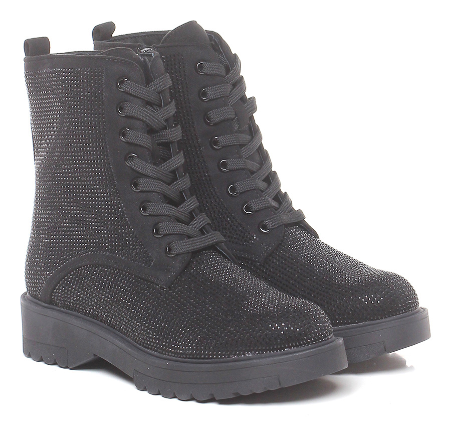 Polacco in tessuto con zip su lato interno e strass su tomaia. Suola in gomma, tacco 40, platform 25 con battuta 15.