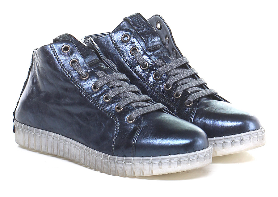 Sneaker in pelle laminata vintage con suola in gomma. Tacco 35, platform 25 con battuta 10.