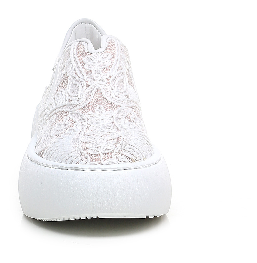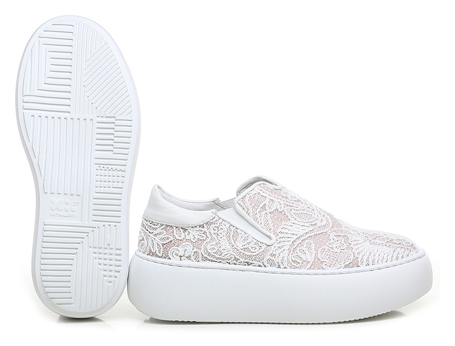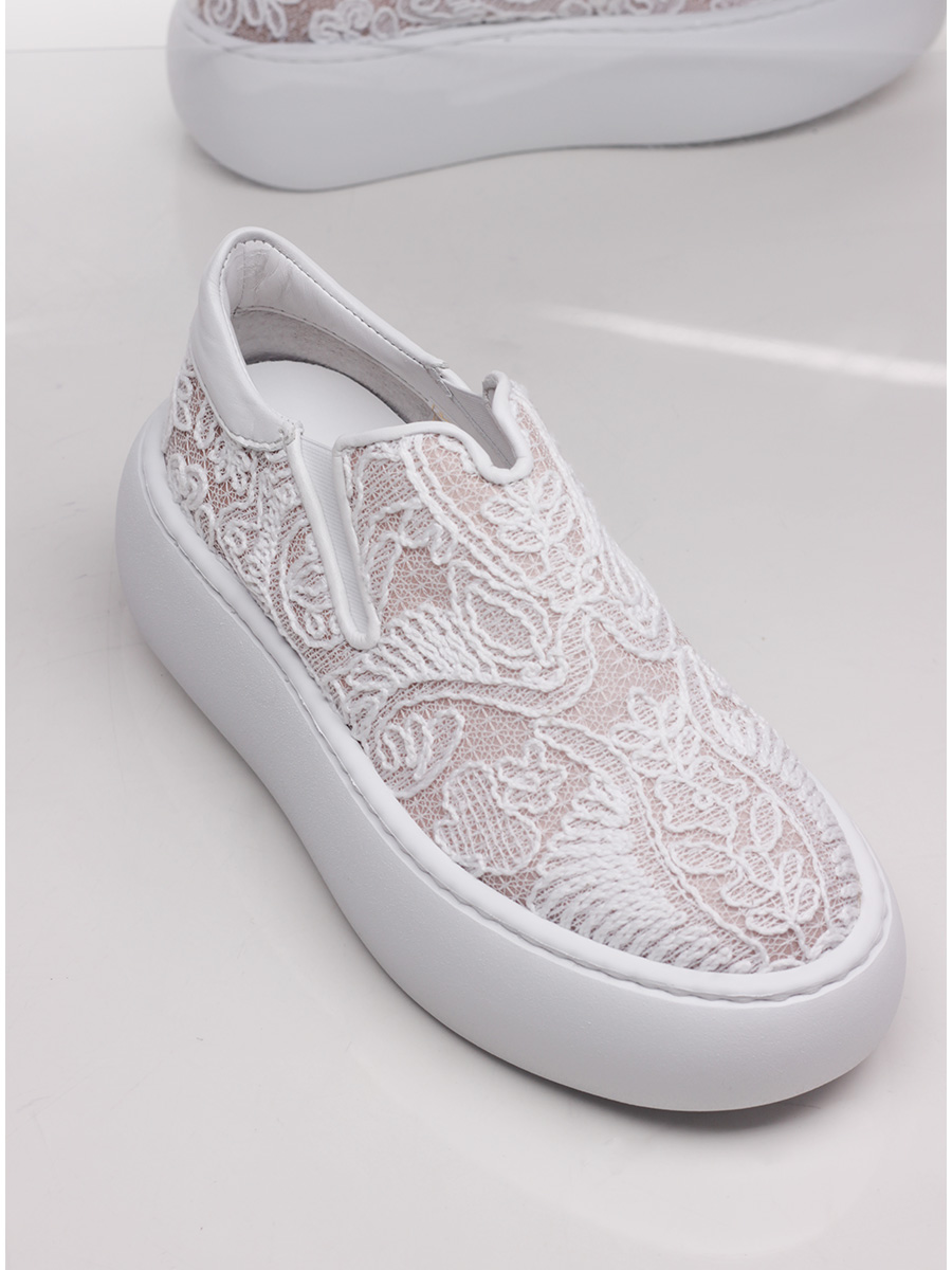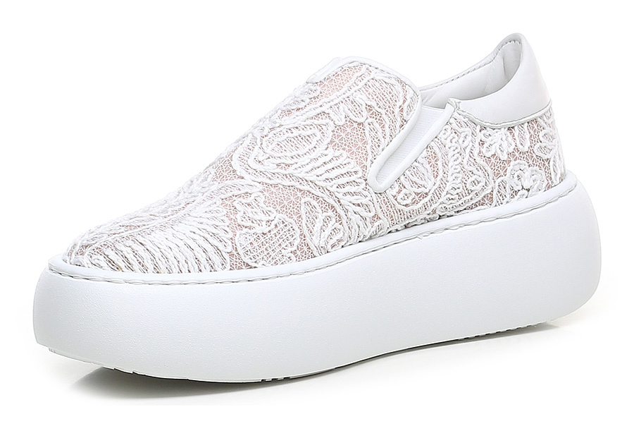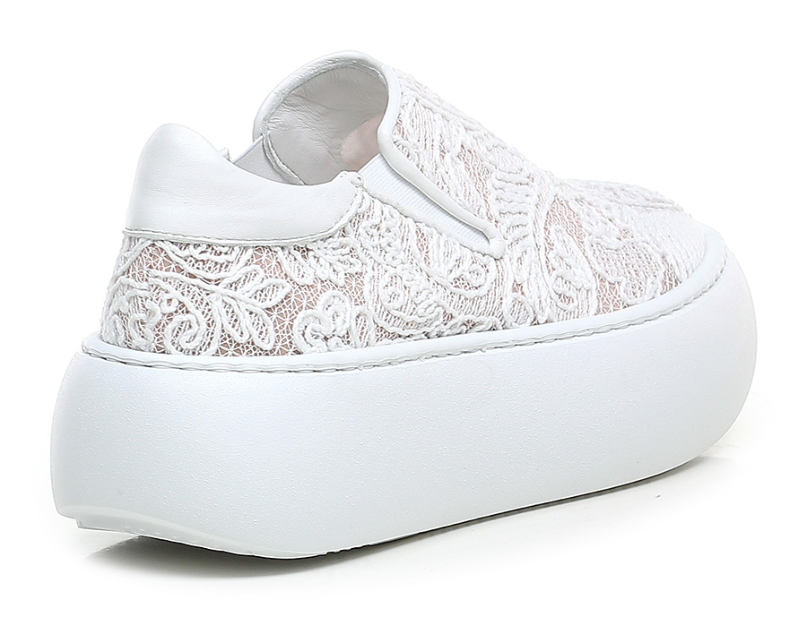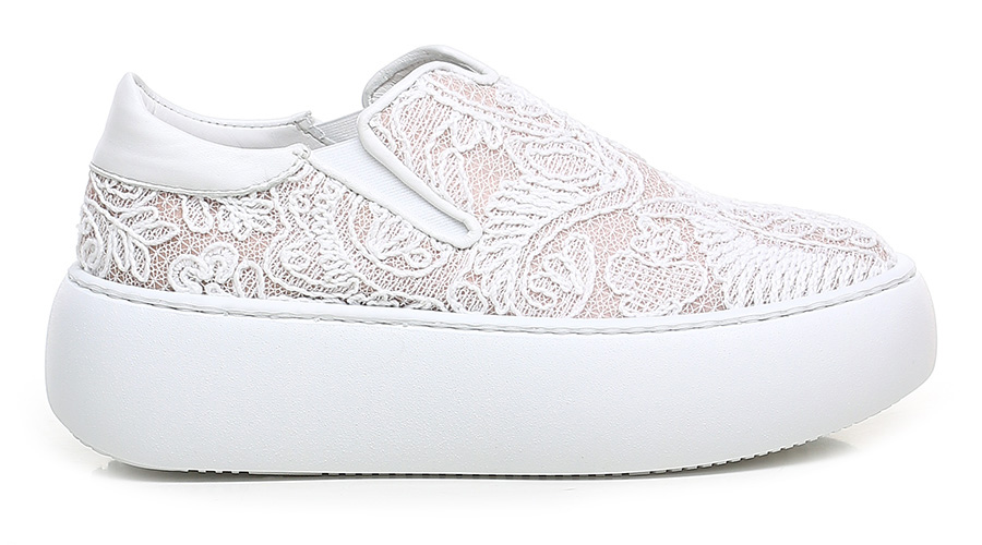 Sneaker in fabric and leather with side elasticated inserts. Rubber sole: 50mm heel height, 40mm platform with 10mm ledge.