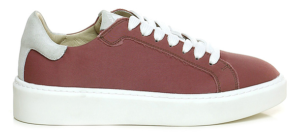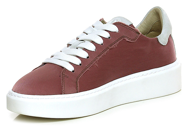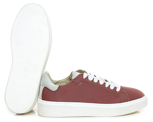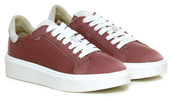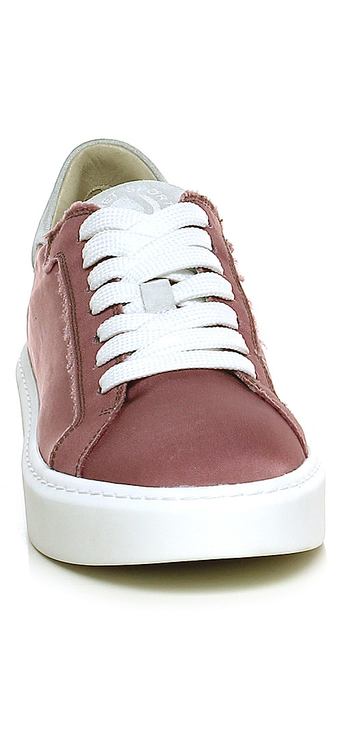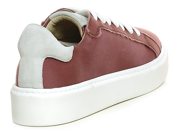 Sneaker in suede and vintage fabric with raw cut seams and rubber sole. 40 heel, 30 platform with 10 bar.