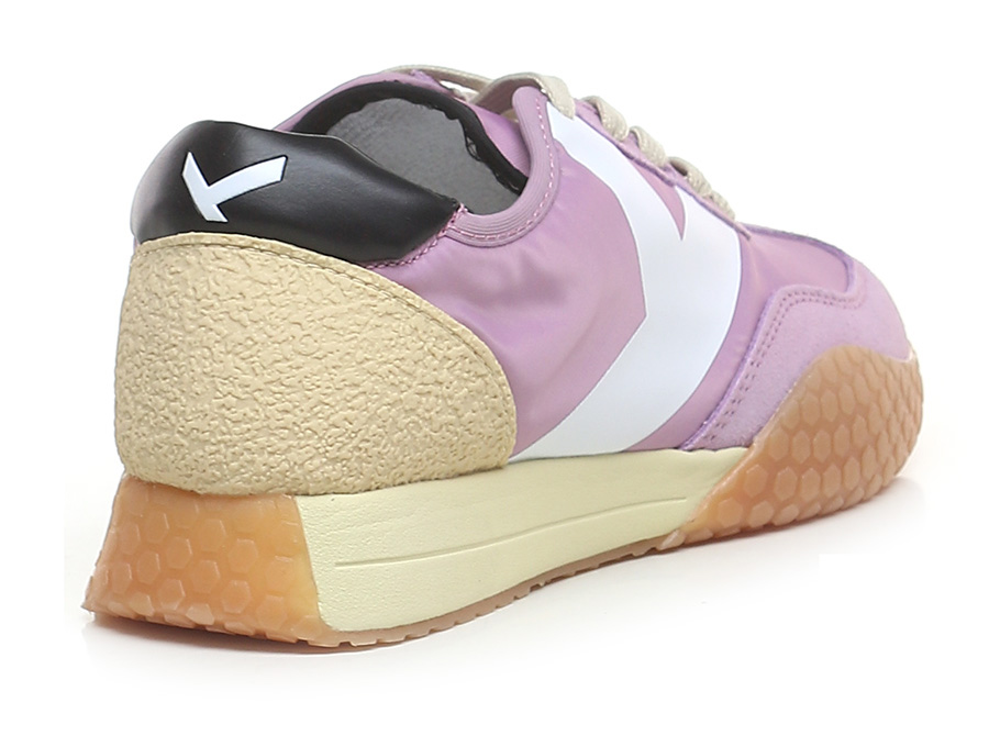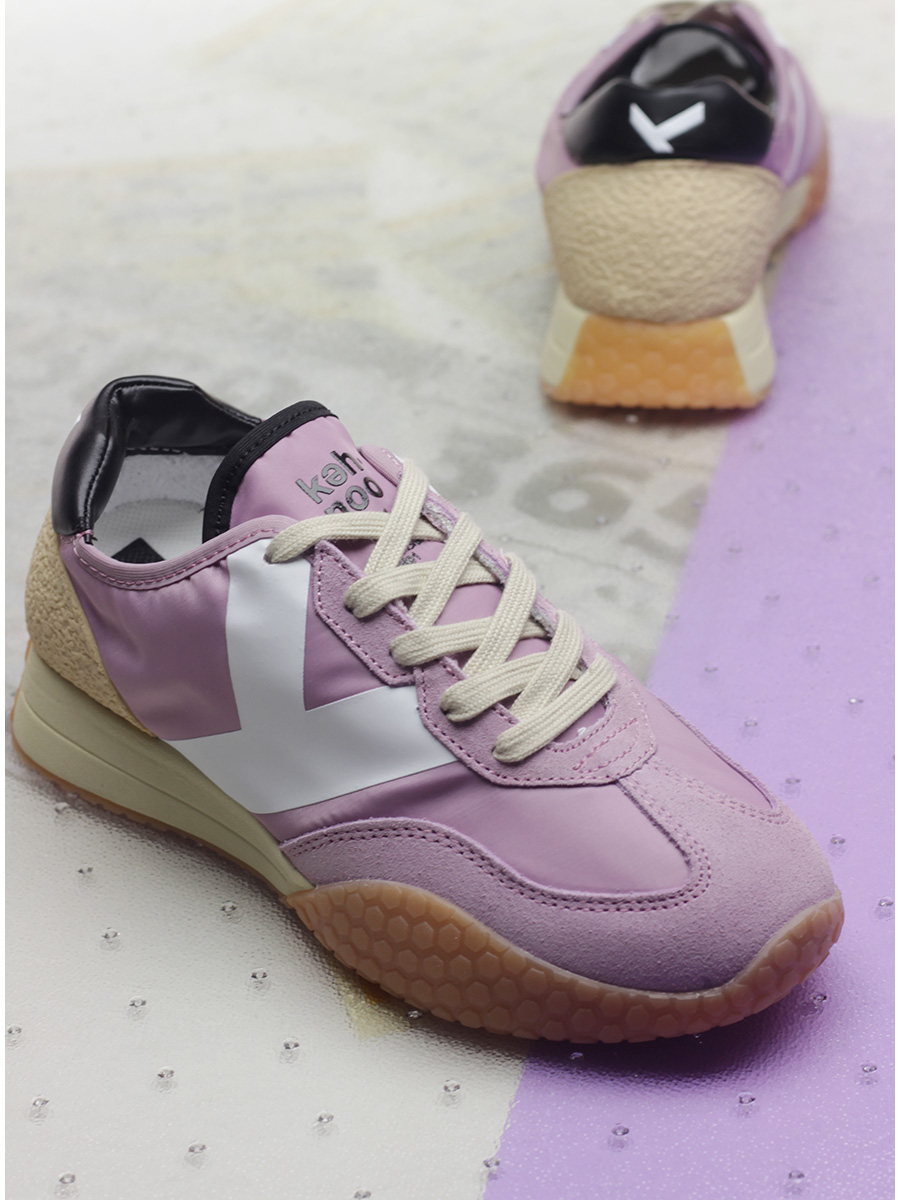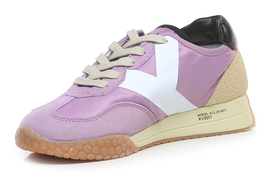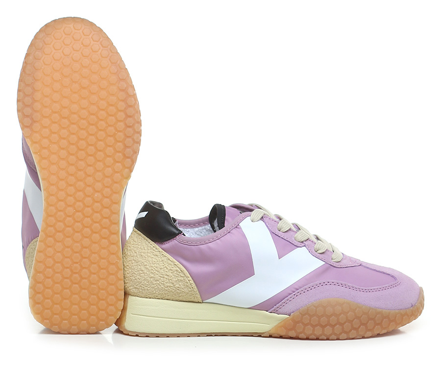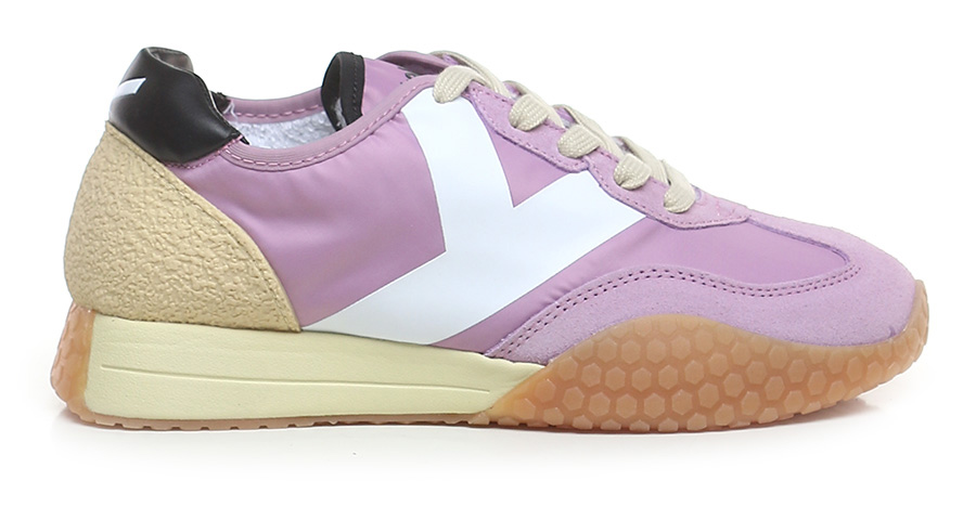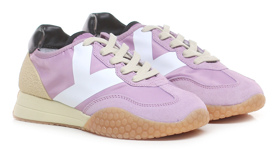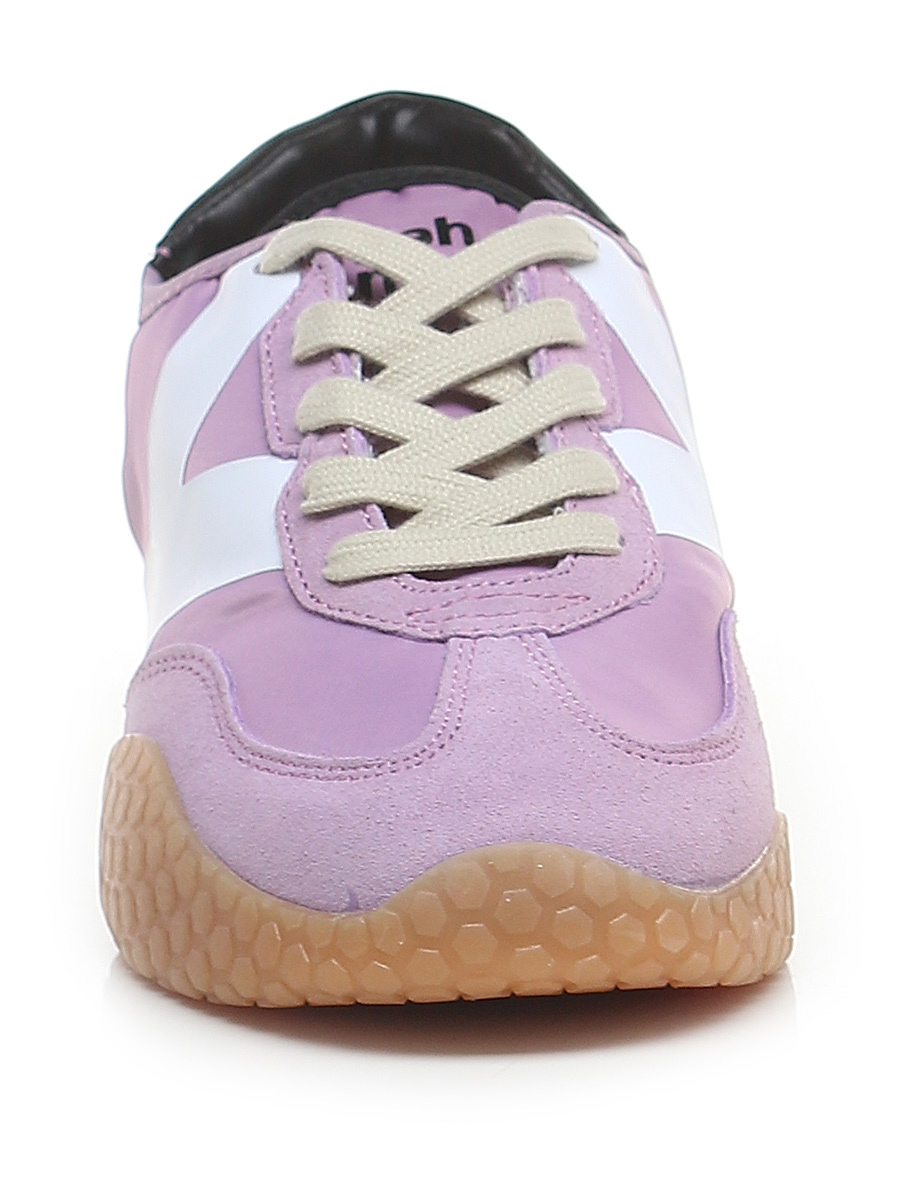 Fabric and suede sneaker with pvc heel tab and rubber sole. 35mm heel height, 20mm platform with 15mm ledge.