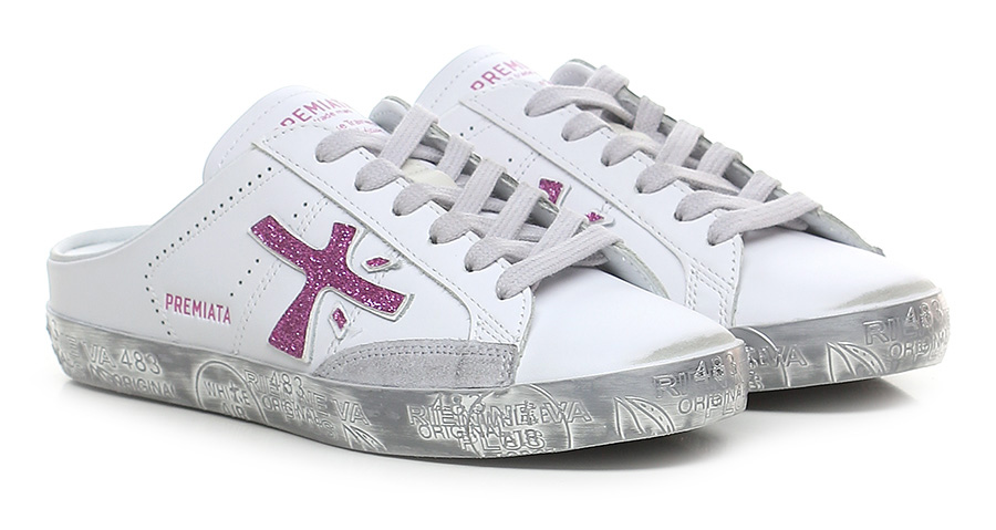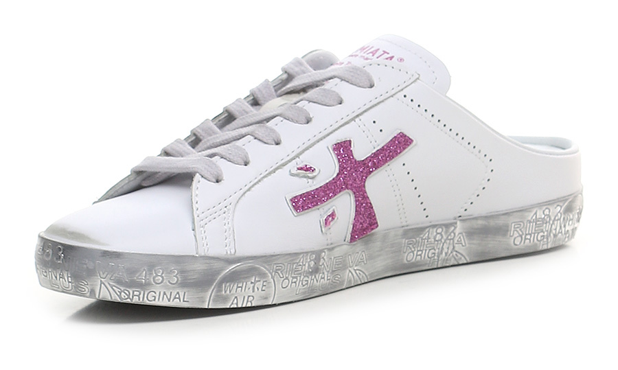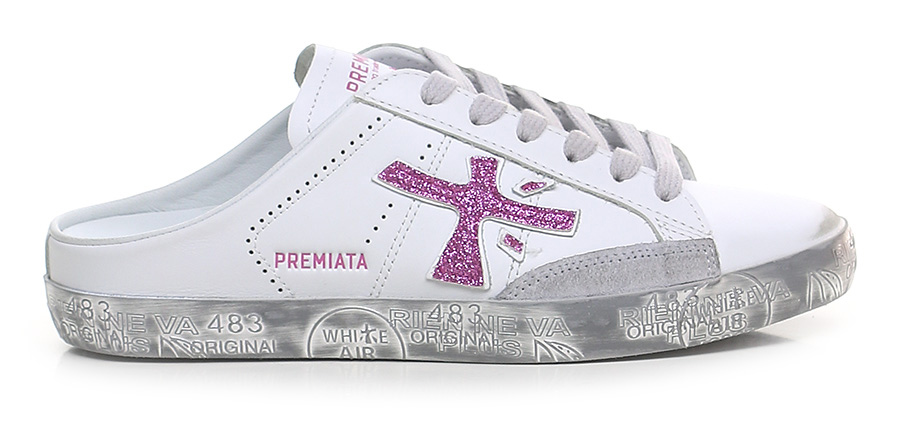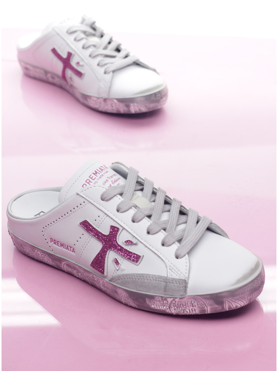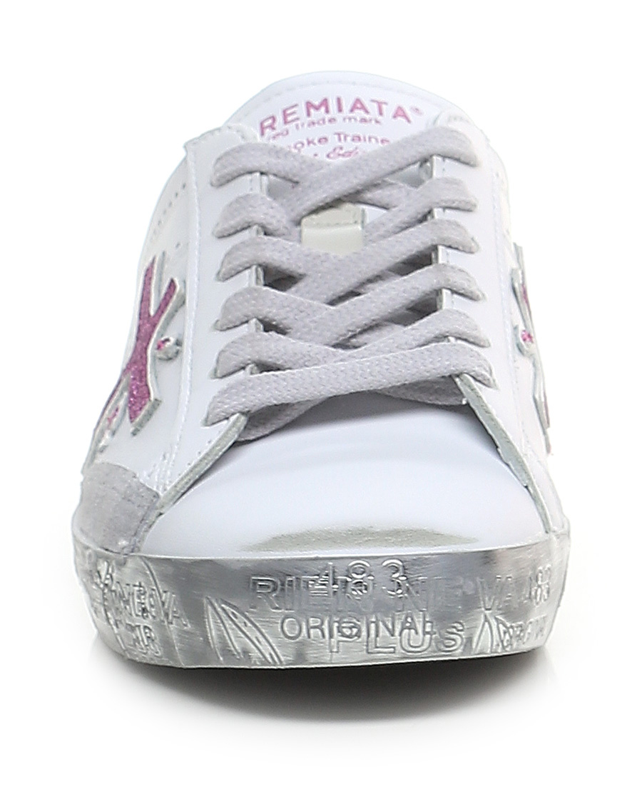 Vintage-effect leather and glitter sneaker. Vintage effect rubber sole. Sole height 20mm.