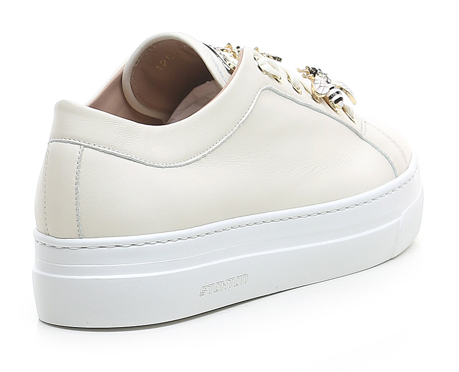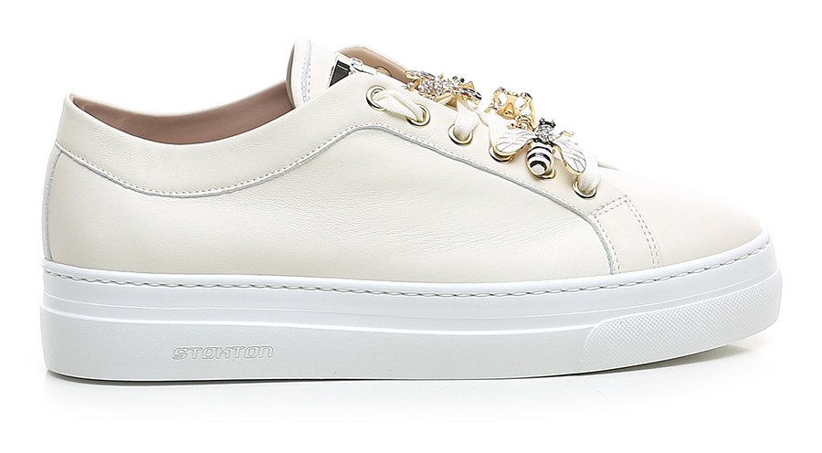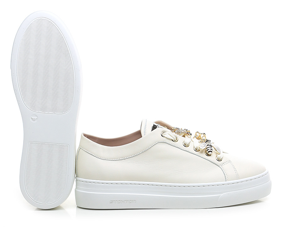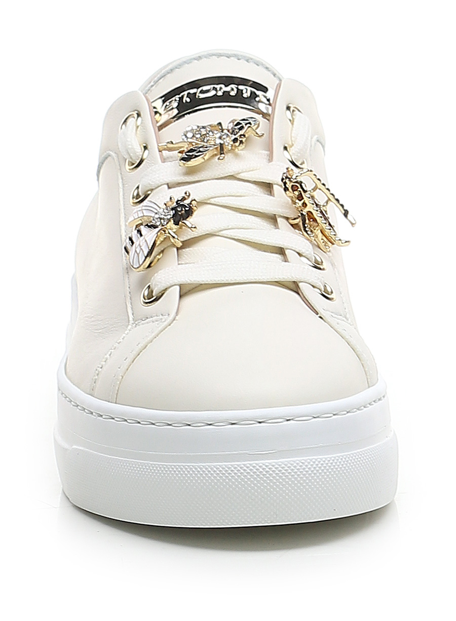 Leather sneaker with removable accessories on the laces. Rubber sole. Sole height 30mm.