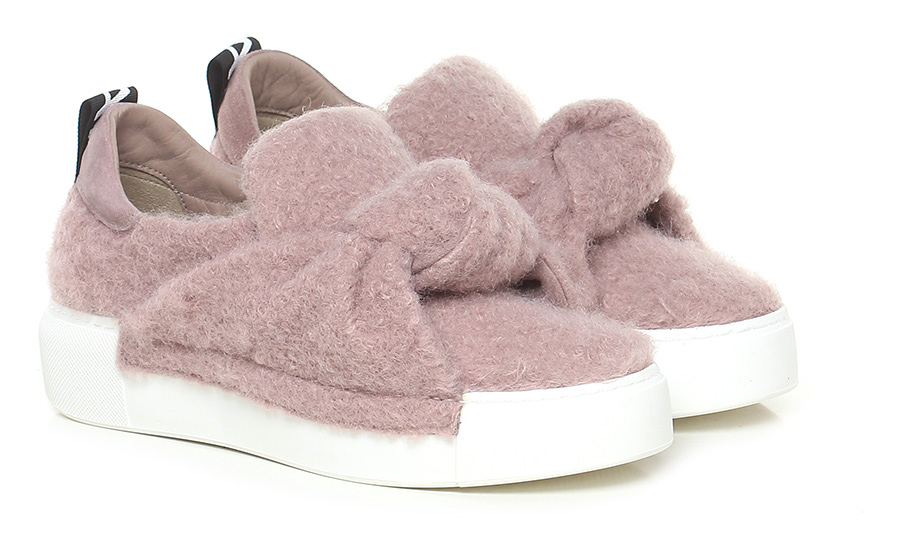 Sneaker in lana e camoscio con suola in gomma. Tacco 45, platform 35 con battuta 10.