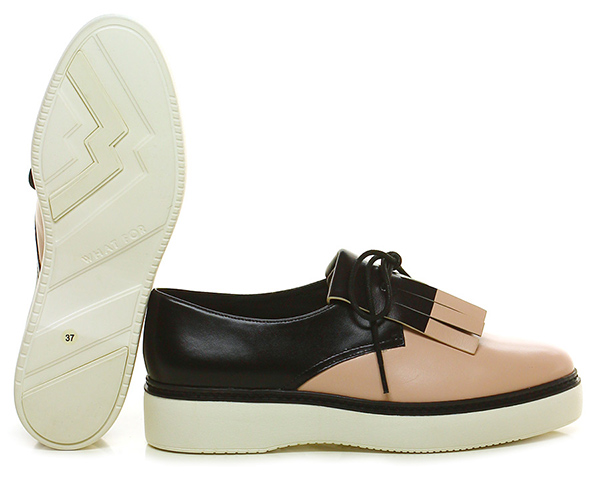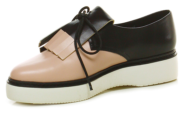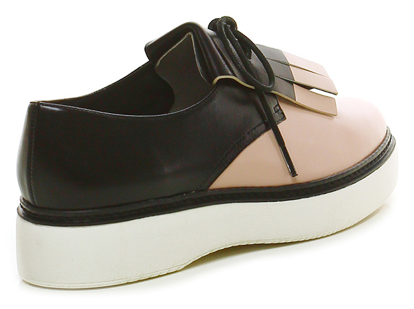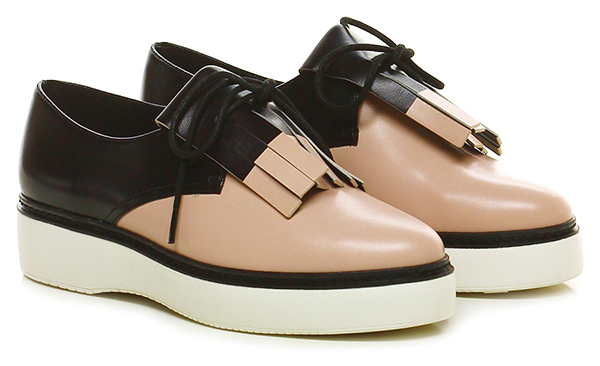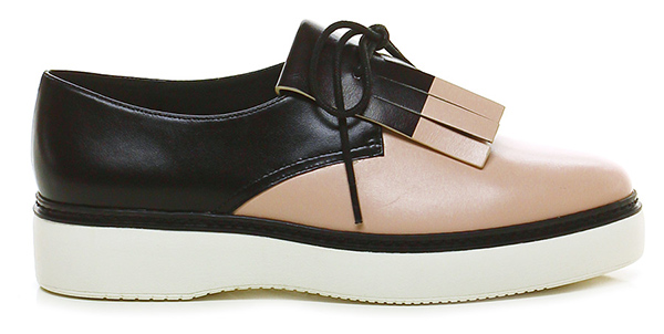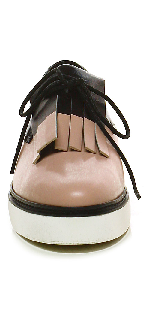 Leather sneaker with front flap with fringes and rubber sole. Heel 40, platform 30 with ledge 10.
