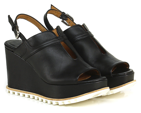 Zeppa in pelle con cinturino su retro e suola in gomma. Tacco 100, platform 40 con battuta 60. Zeppa in pelle.