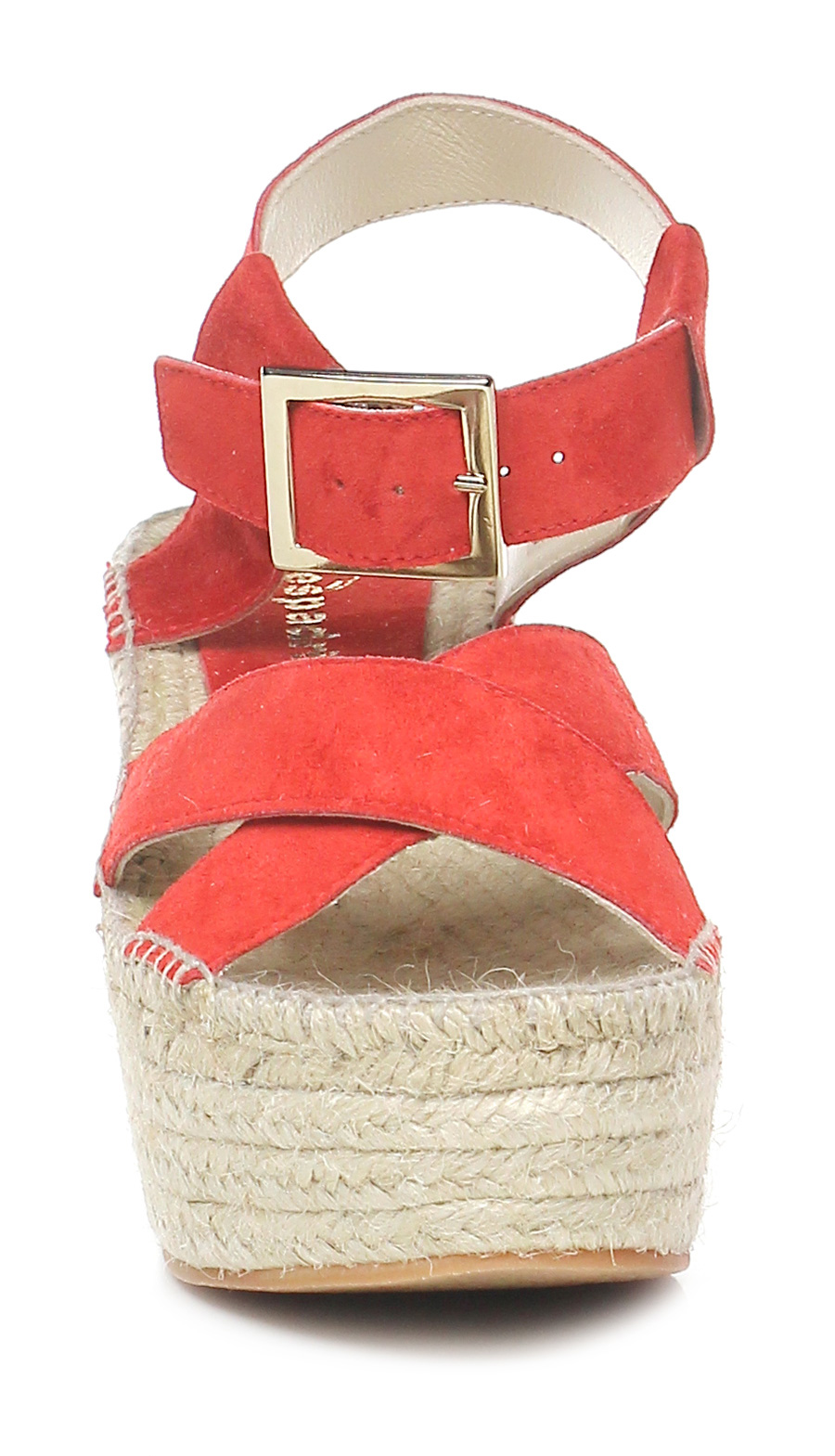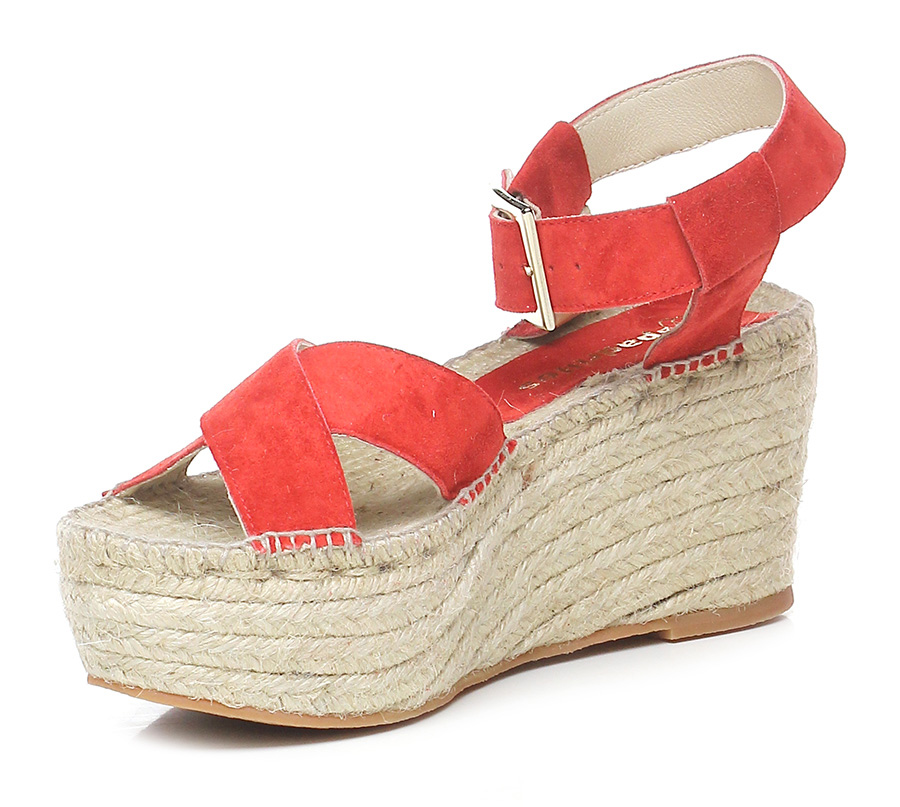 Suede wedge with ankle strap, rubber sole. 80 heel, 50 platform with 30 bar.
