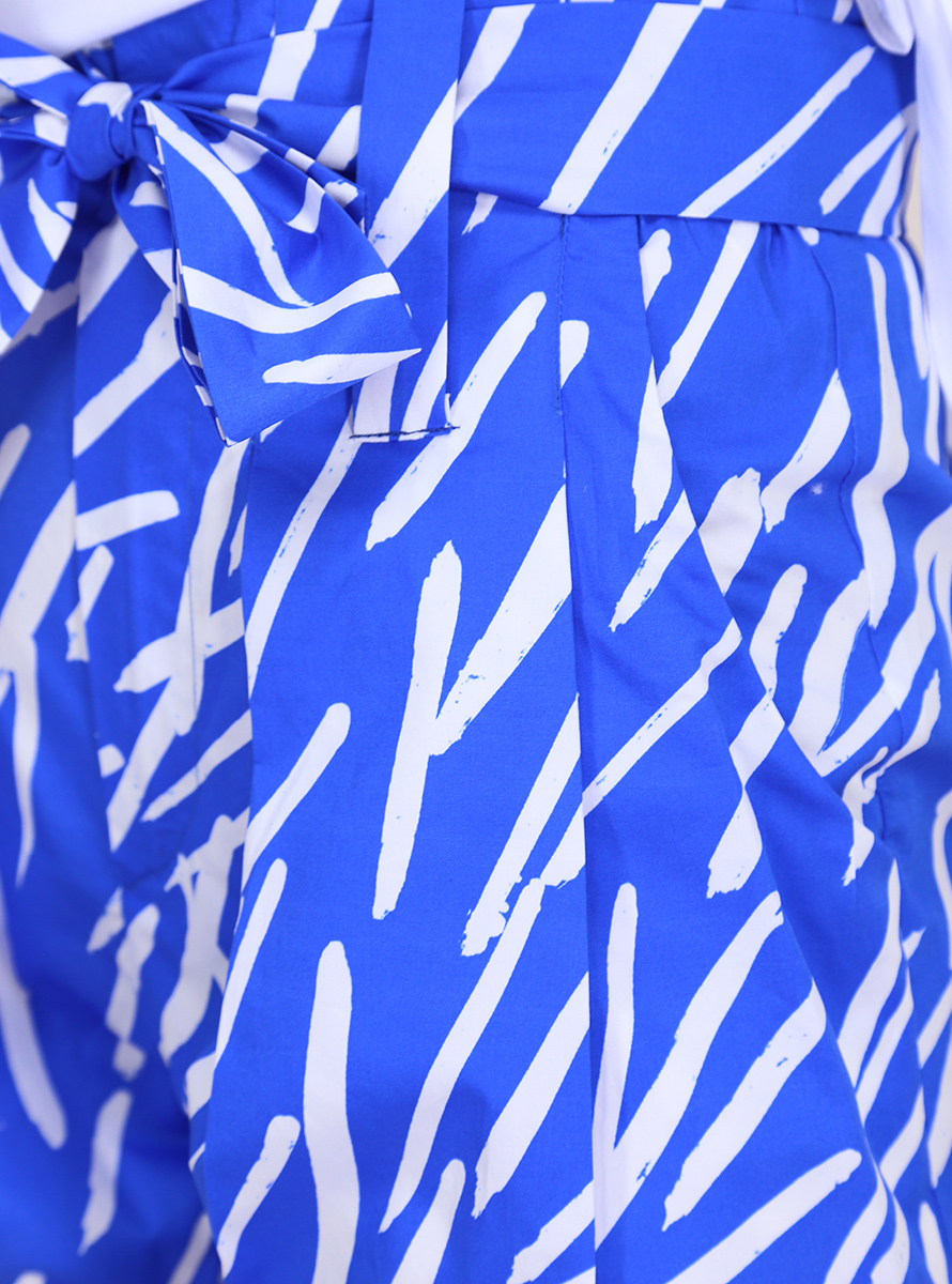 Short Hanita in cotone a vita alta con pences. Tasche all'americana e a filetto sul retro. Risvolto sul fondo e cintura in tessuto inclusa. Fantasia astratta bicolor. La modella è alto 1.70 ed indossa la taglia 38.