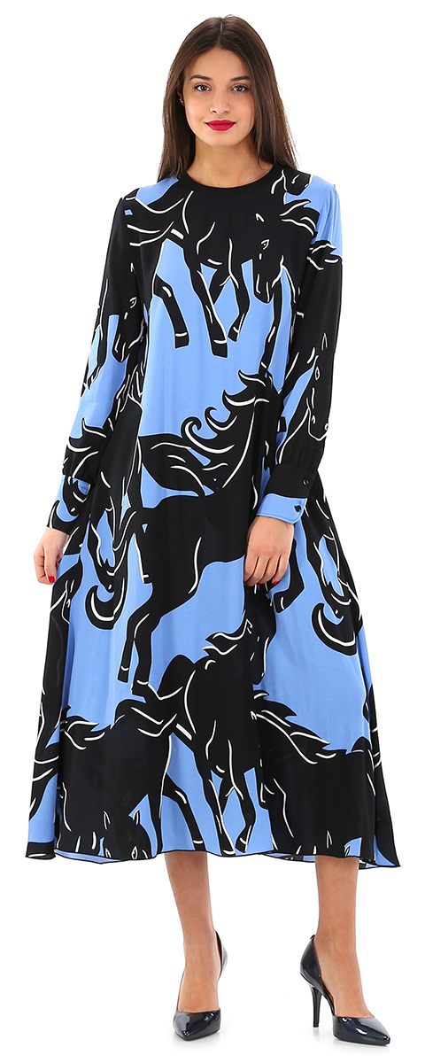 Abito lungo misto viscosa con dettaglio gioiello su spalla sx, tasche laterali a sacchetto, maniche lunghe con polso alto e collo giro. Zip di chiusura sul retro. La modella è alta 1,80 ed indossa la taglia 42.