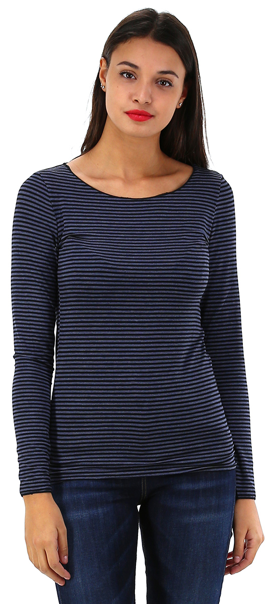 Maglia in viscosa ed elasthane, maniche lunghe e collo a barca. La modella è alta 1,80 ed indossa la taglia S.