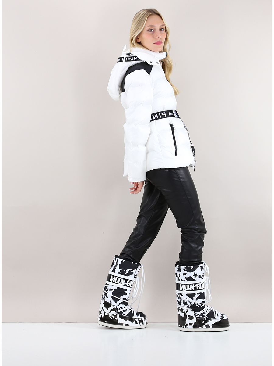 Piumino Pinko for Invicta a maniche lunghe e collo a fascetta con cappuccio removibile. Tasche a sacchetto con zip e coulisse sul fondo. Zip di chiusura frontale a doppio cursore. Dettagli a contrasto logati. Cintura in tessuto inclusa. La modella è alta 1.70 ed indossa la taglia 40.