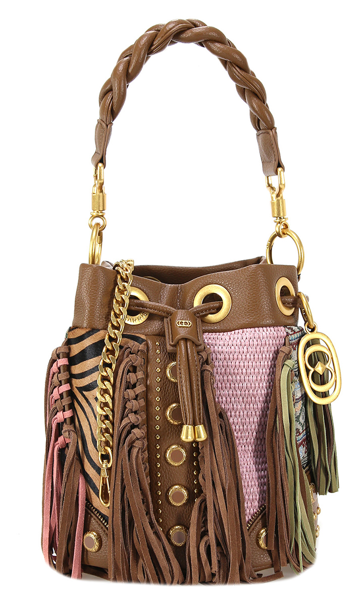 • Applicazioni: Logo, Borchie, Fondo con piedini, Dettagli gold, Frange, Fantasia