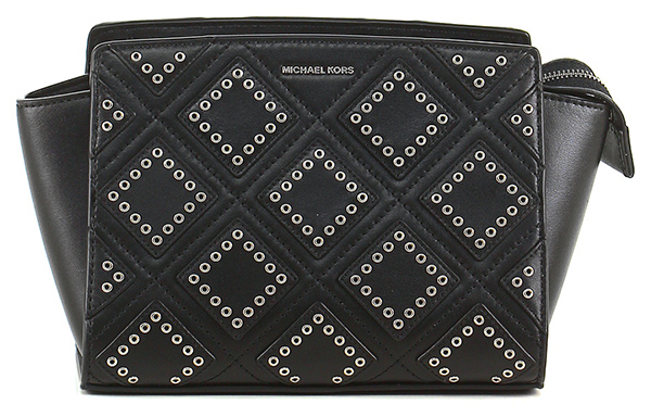 Borsa in pelle effetto quilted con borchie e chiusura a zip silver. Tracolla inclusa, misure 23 x 18 cm.