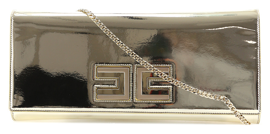Borsa in eco pelle con chiusura magnetica. Logo frontale. Tracolla in metallo inclusa. Misure 40 x 19 cm. Dettagli gold.