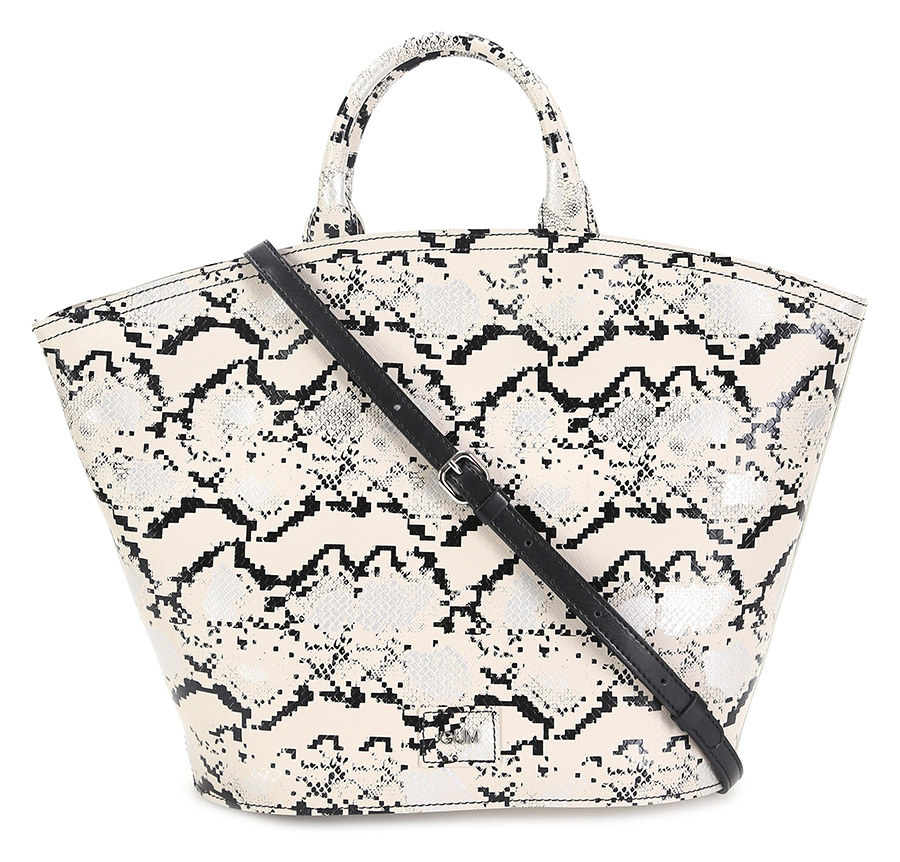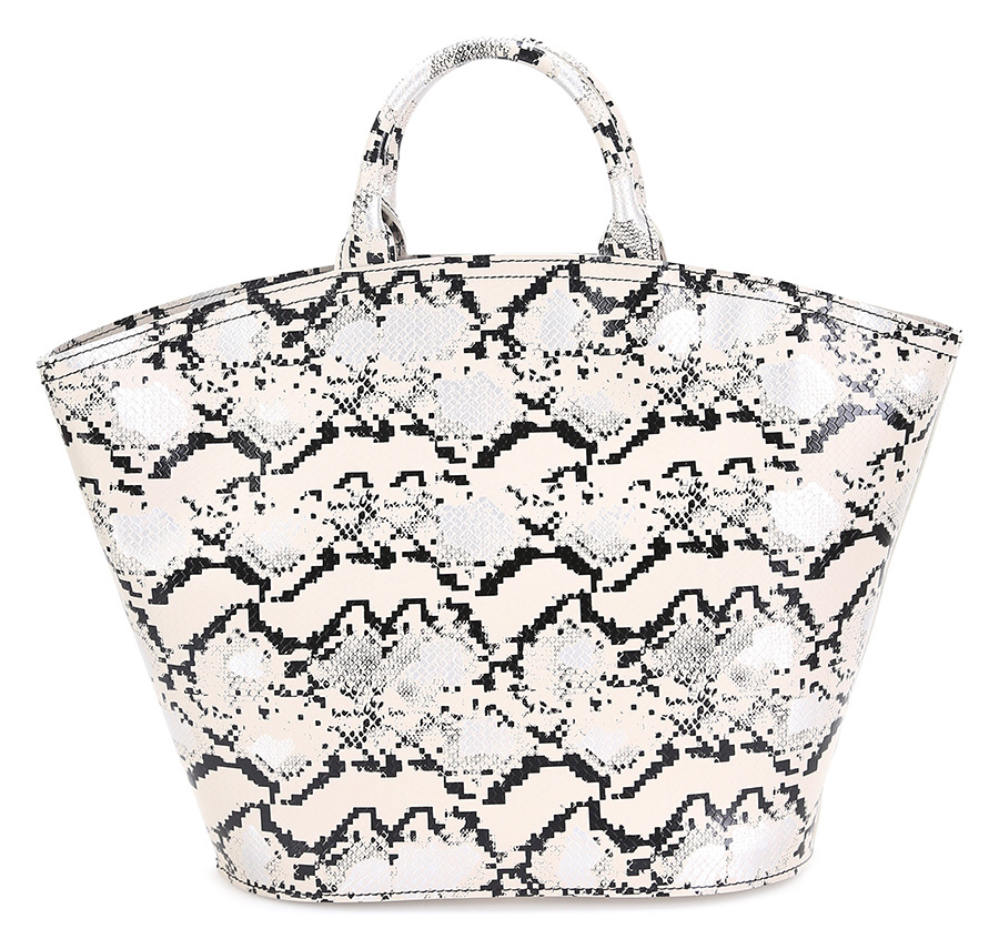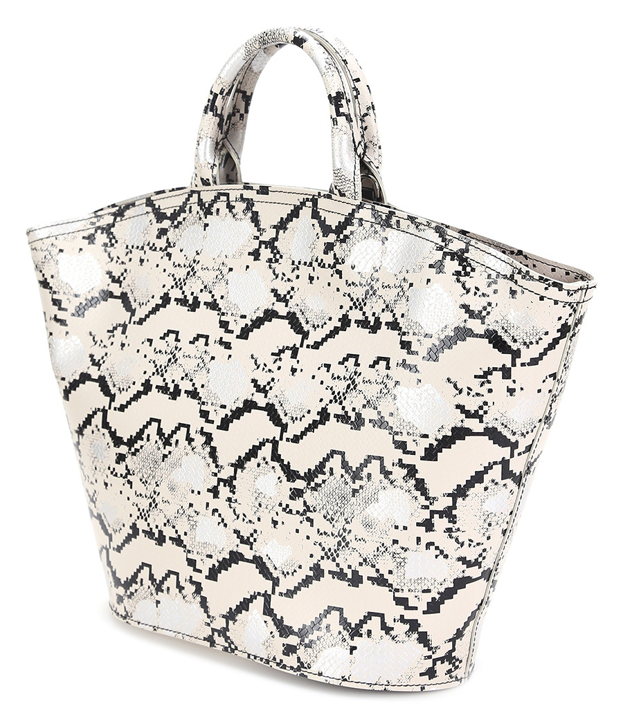 Borsa in lattice effetto martellato con bottone magnetico e zip di chiusura. Pochette interna inclusa. Tracolla inclusa. Misure 29 x 30 cm. Dettagli silver.