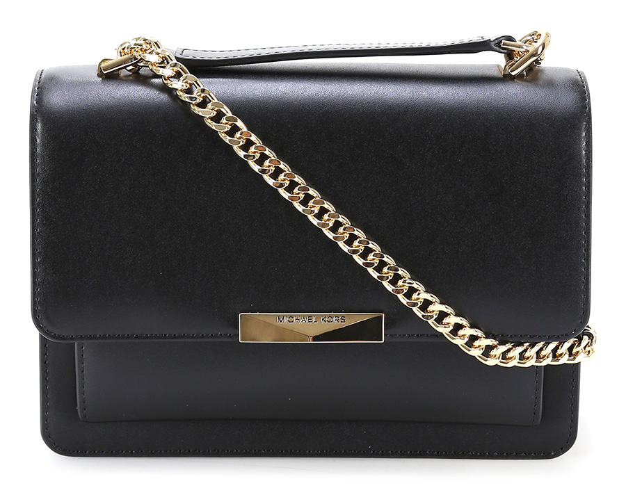 Borsa in pelle con bottoni magnetici di chiusura. Tracolla in metallo inclusa. Misure 23 x 16 cm. Dettagli gold.