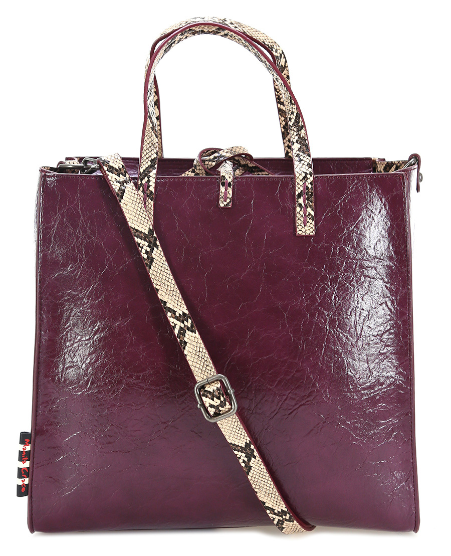 Borsa in eco pelle con laccio e zip di chiusura. Tracolla inclusa. Pochette estraibile inclusa. Misure 32 x 31 cm. Dettagli silver.