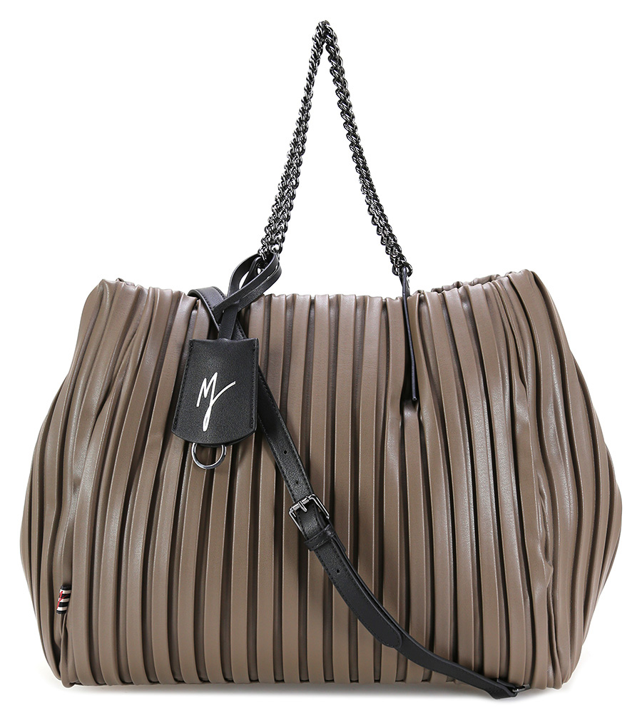 Borsa in similpelle con zip di chiusura. Charm incluso. Tracolla inclusa. Misure 43 x 35 cm. Dettagli silver.