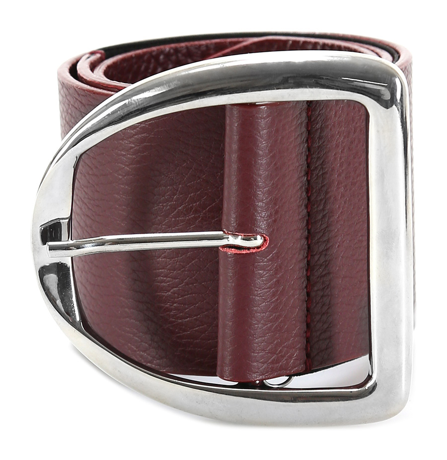 Cintura in pelle martellata con fibbia metallica. Altezza 7 cm. Dettagli silver.