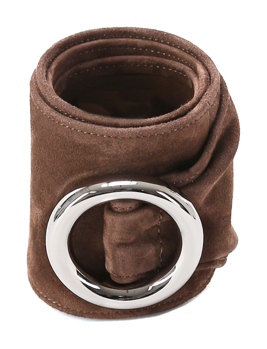 Cintura in pelle scamosciata con fibbia metallica. Altezza 9,5 cm.