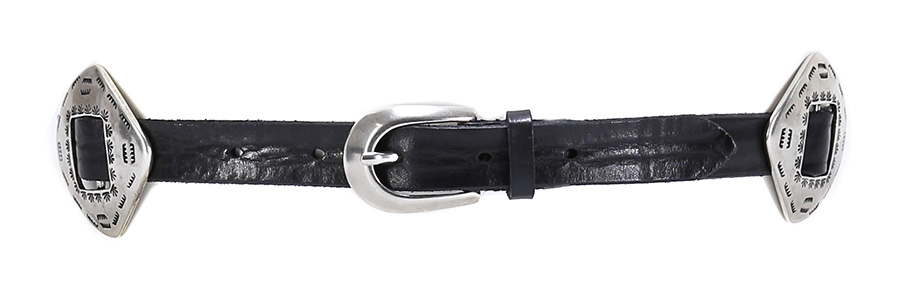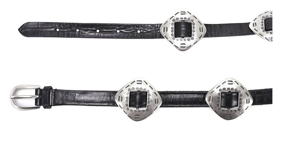 Cintura in pelle con dettagli metallici. Altezza 5 cm.