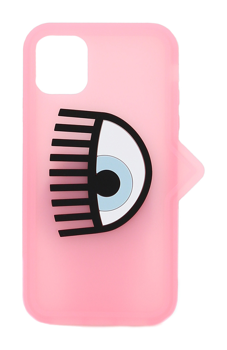 Cover translucida per Iphone 11 in silicone rosa. Dettaglio "Logomania" sul davanti.