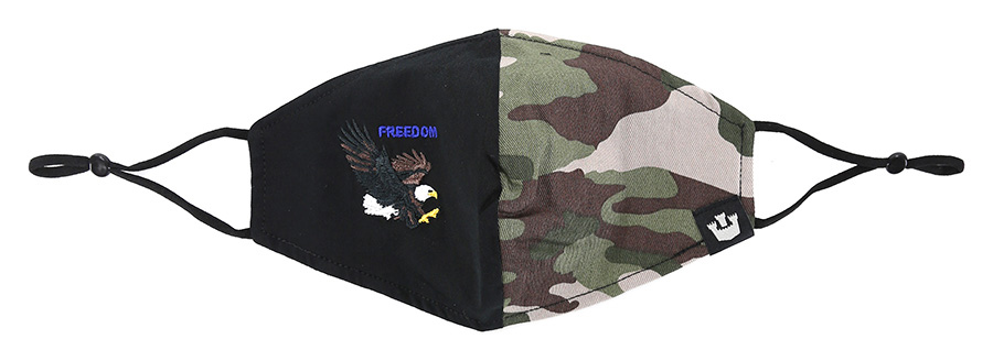 Mascherina in 100% cotone con patch frontale. Aperture interne per cambio filtro. Lacci regolabili.
