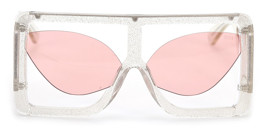 Occhiali da sole in acetato con montatura rettangolare. Lenti scure, protezione UVA e UVB al 100%. Logo sulla parte interno ed esterno. Custodia protettiva inclusa. Misure 16 x 6 cm. Dettagli gold.