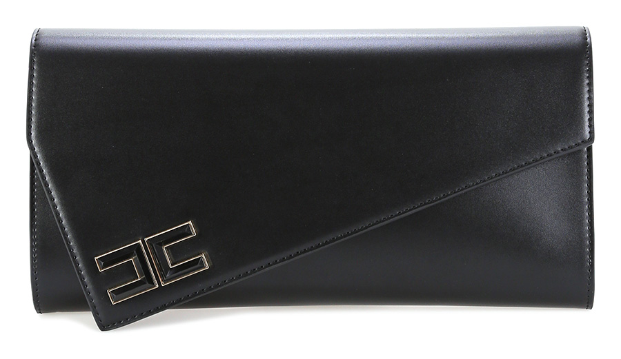 Pochette in pelle sintetica con bottone magnetico di chiusura. Patta con logo asimmetrica. Misure 31 x 16 cm. Dettagli gold.