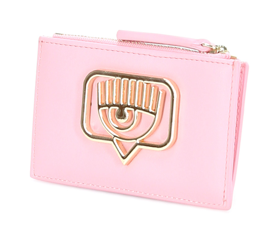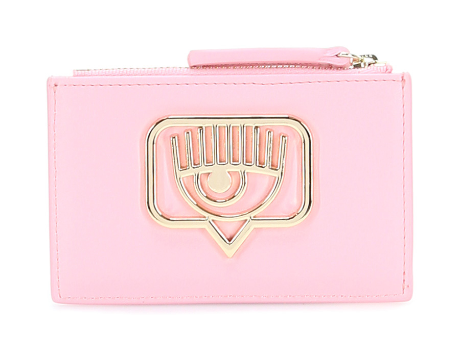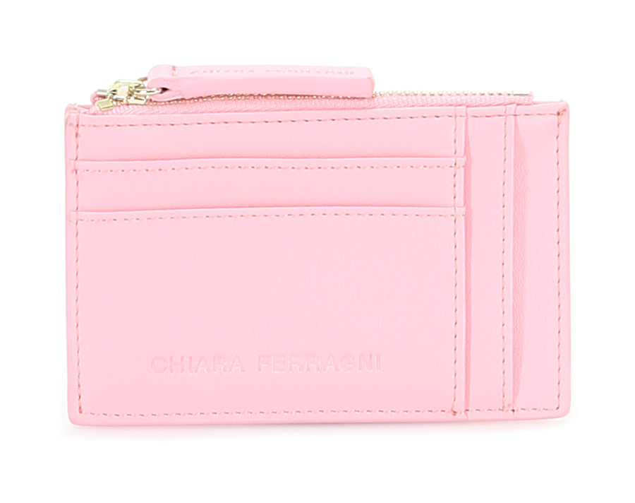 Portafoglio in pelle sintetica con chiusura zip. Scomparti porta tessere esterni. Scomparti porta monete interni. Misure 12,5 x 8 cm. Dettagli gold.