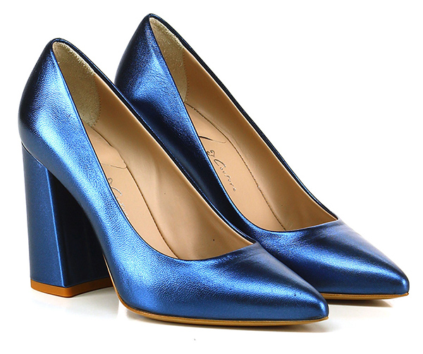 Decolletè in pelle laminata vintage con suola in cuoio. Tacco 95.