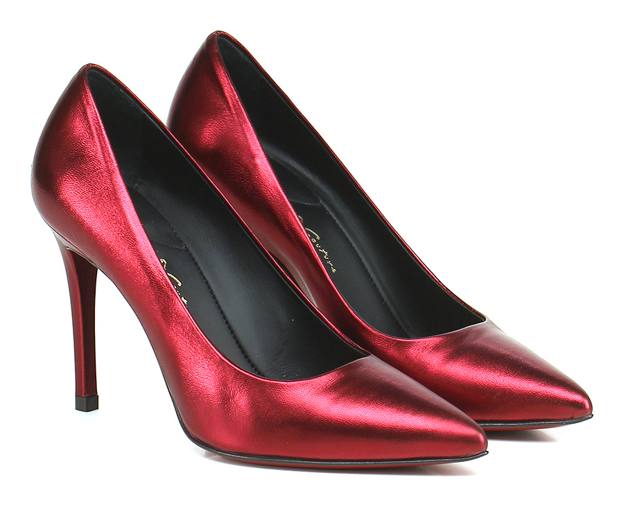 Decolletè in pelle laminata vintage con suola in cuoio e gomma. Tacco 95.