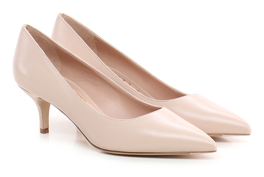 Decolletè in pelle con suola in cuoio, tacco 60.