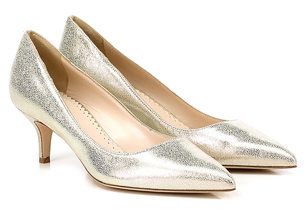 Decolletè in pelle laminata effetto crack con suola in cuoio. Tacco 55.
