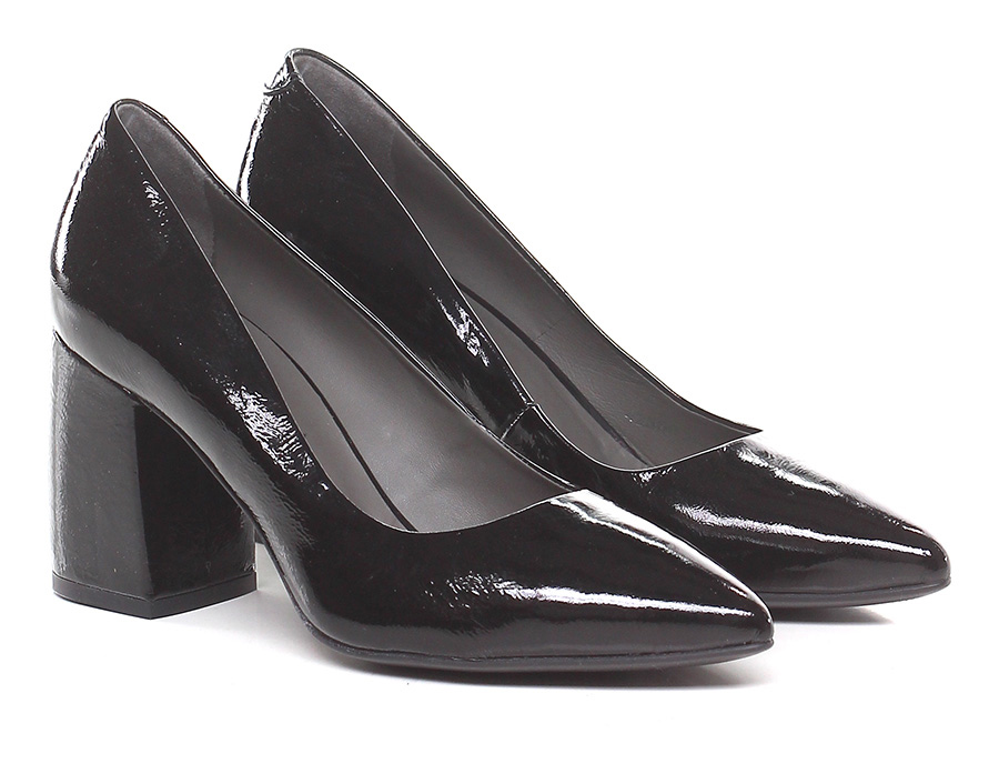Decolletè in vernice con suola in gomma. Tacco 80.