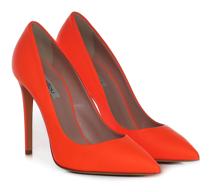 Decolletè in pelle effetto gommato, suola in cuoio. Tacco 110.