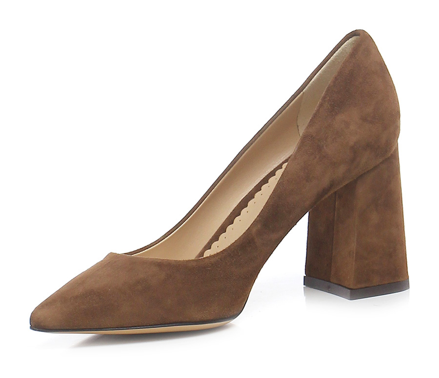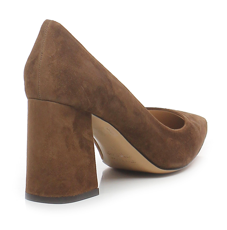 Decolleté in camoscio, suola in cuoio e gomma. Tacco 90 , rivestito in camoscio.