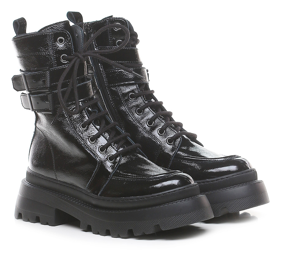 Polacco in naplak con zip laterale e doppio cinturino frontale. Suola in gomma. Altezza tacco 65mm, platform 45mm con battuta 20mm.