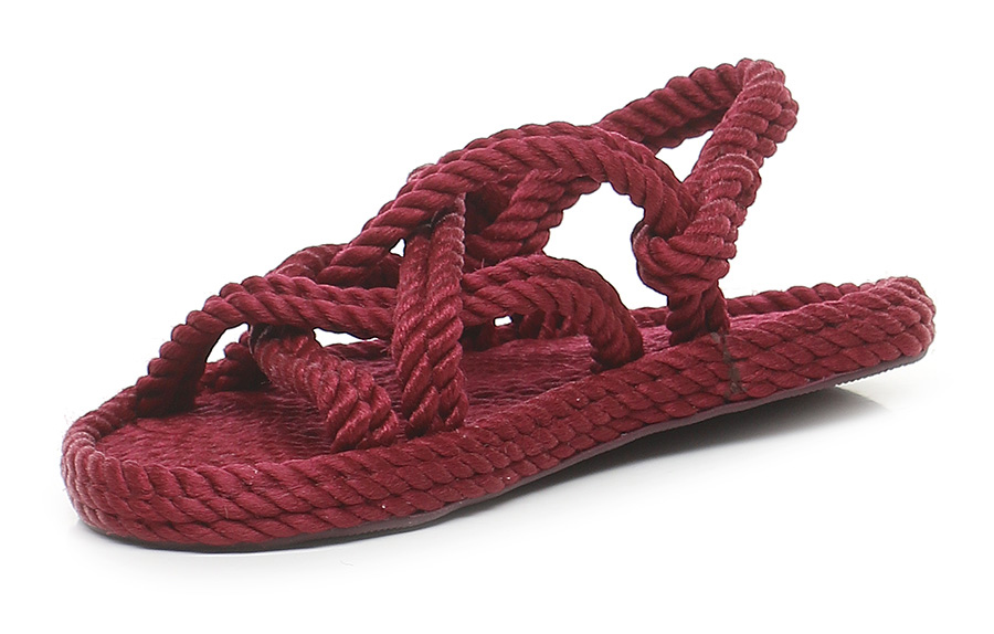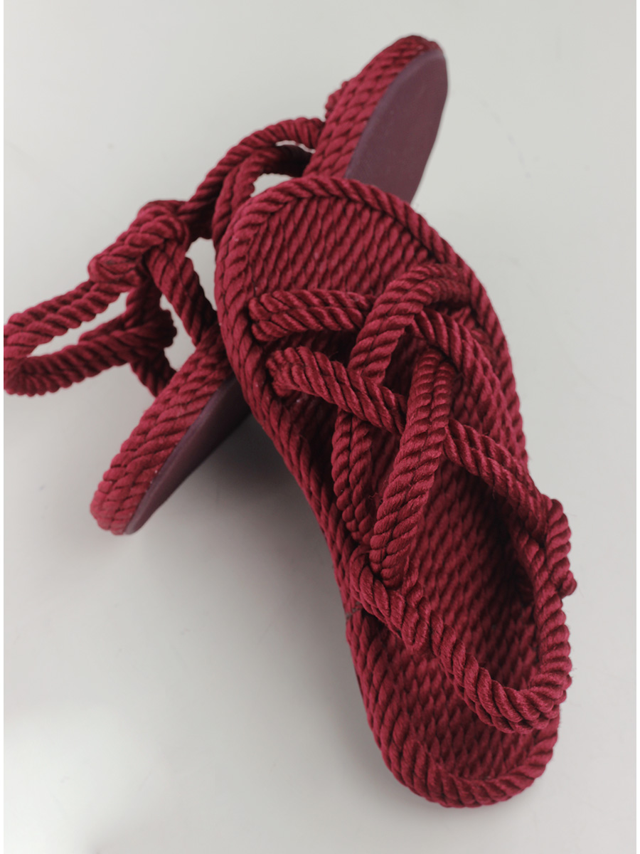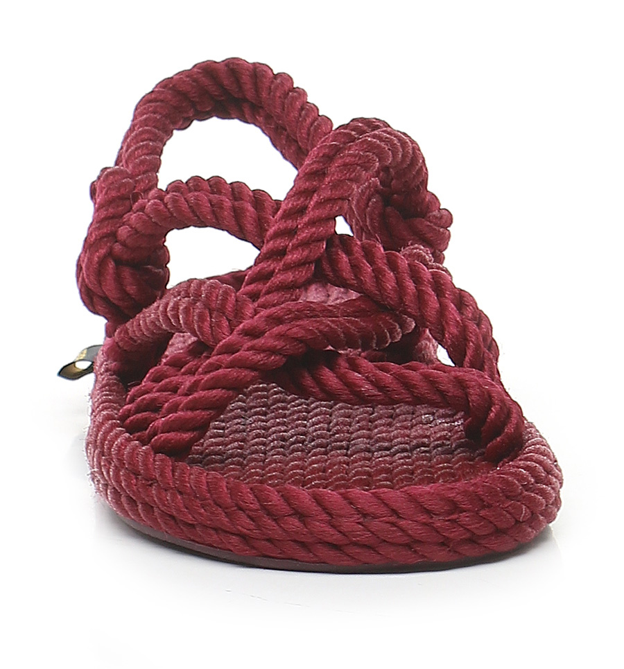 Sandalo basso fatto a mano in corda intrecciata antibatterica vegana con cinturino sul retro slip-on. Suola in gomma riciclabile. Tacco 15, platform 15, sono resistenti all'acqua salata del mare e piscina, calzata piccola. Indossare i sandali Bohomad danno la sensazione di andare a piedi nudi, handmade 100%.
