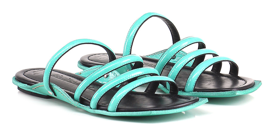 Sandalo basso in vernice con suola in cuoio. Tacco 15.