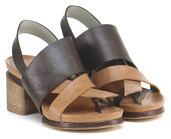 Sandalo basso in pelle con cinurino su retro ed infradito. Suola in cuoio, tacco 75, platform 20 con battuta 55.