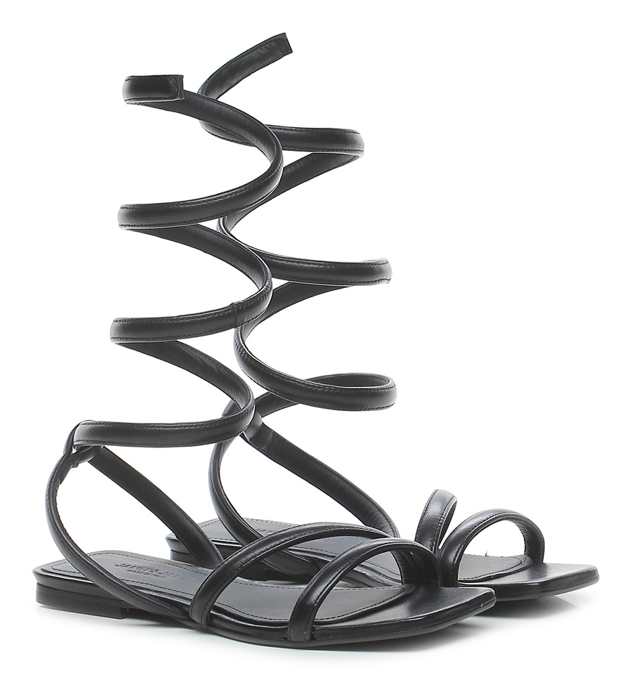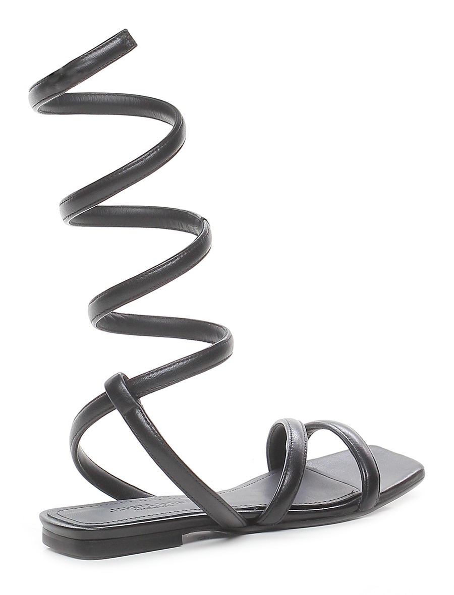 Sandalo basso in pelle con cinturino alla caviglia semirigido regolabile, suola in cuoio. Tacco 15.
