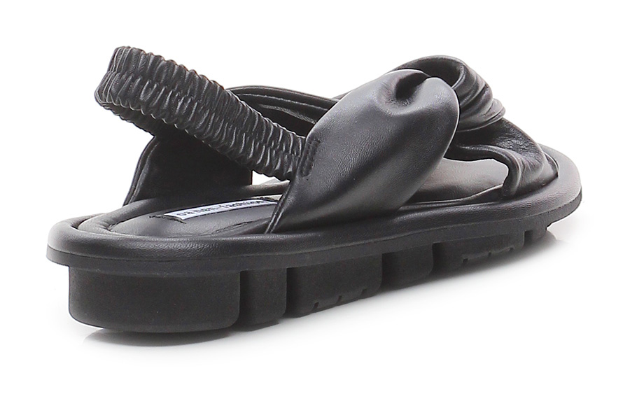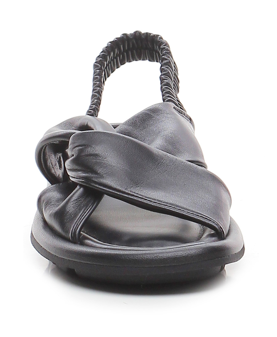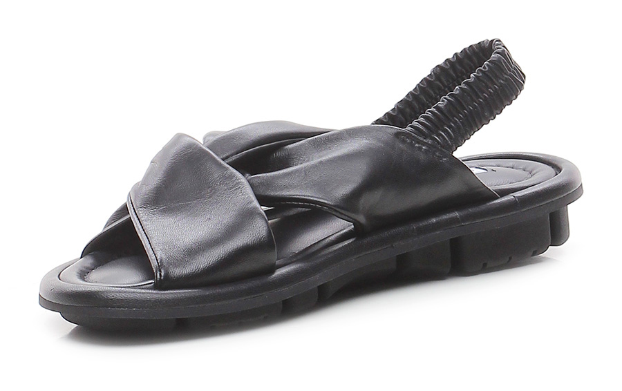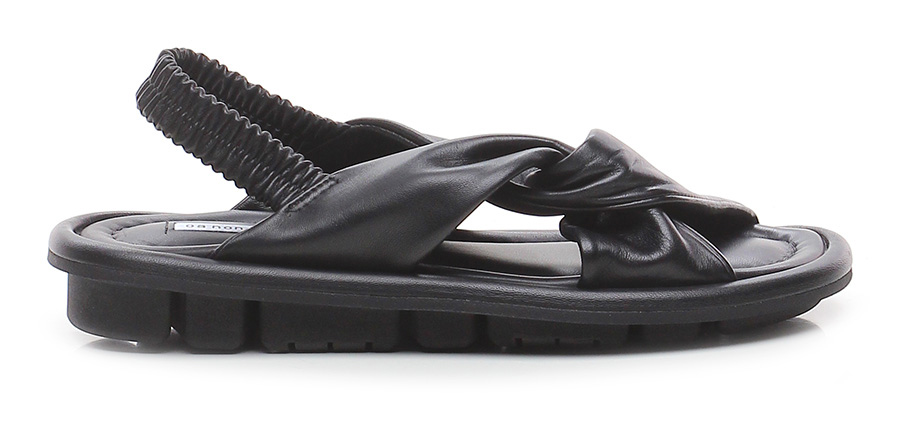 Sandalo basso in cuoio vegetale con sottopiede in fiori di alga e suola in gomma 100% naturale. Tacco 30, platform 20 con battuta 10. Plantare morbido imbottito e cinturino sul retro elasticizzato.