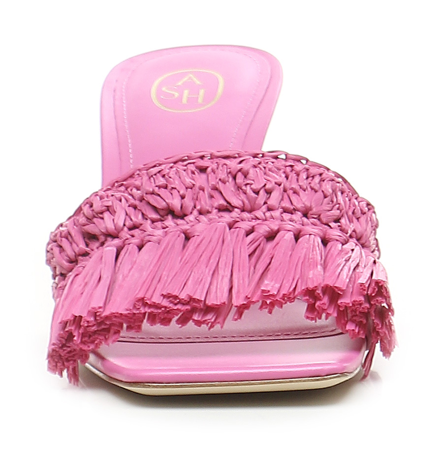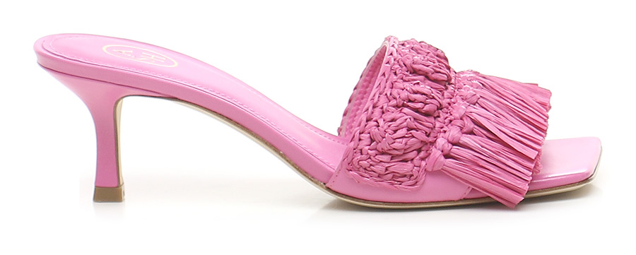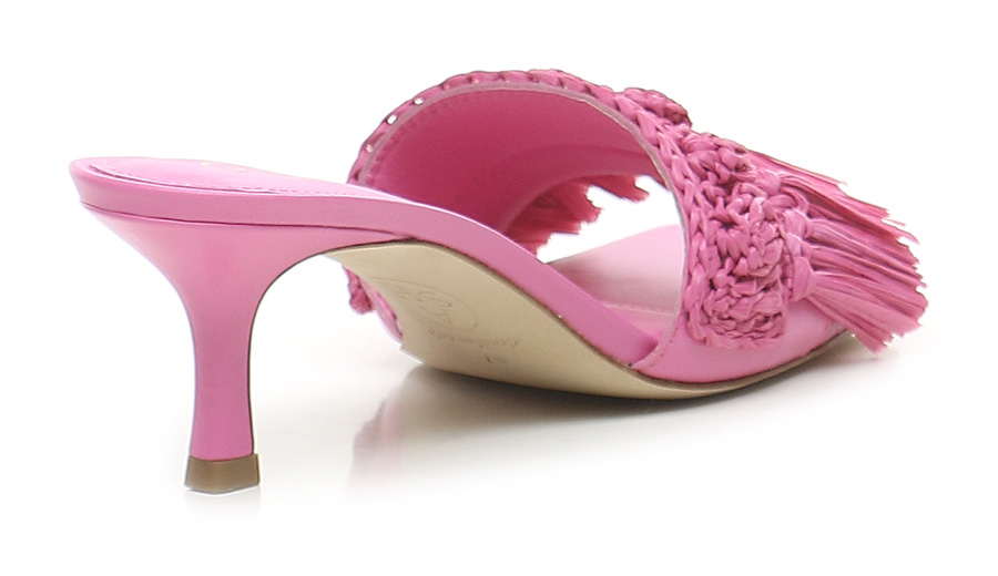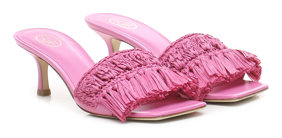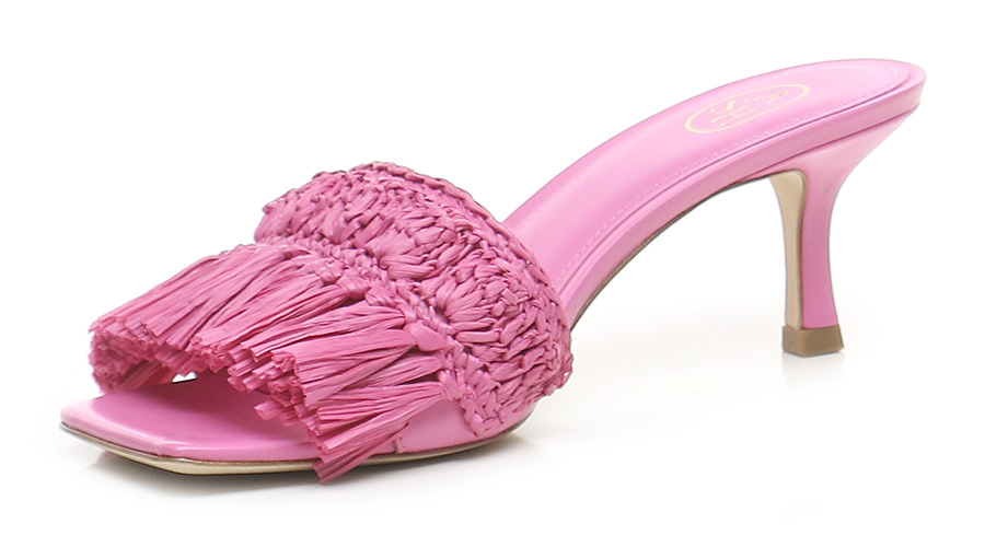 Sandalo in raffia con suola in cuoio. Altezza tacco 65mm.