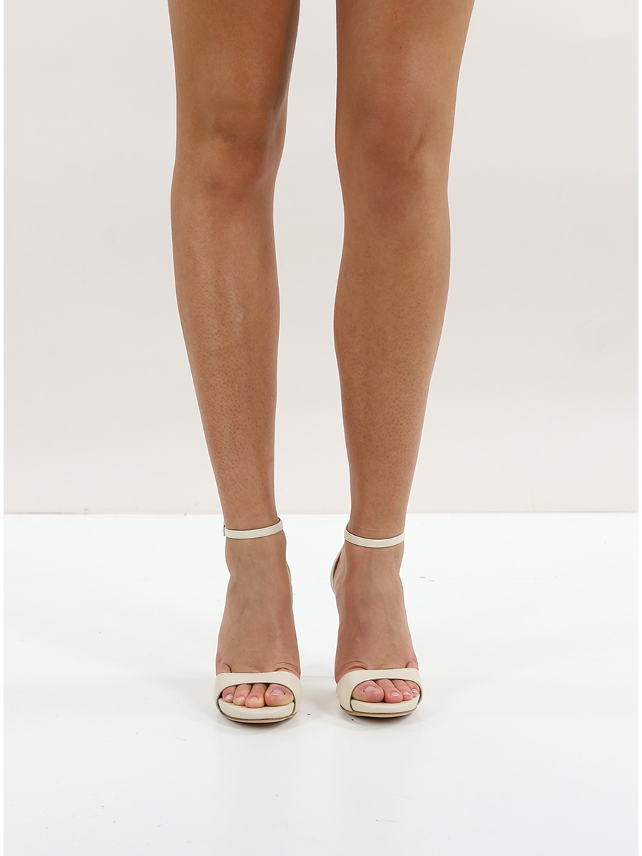 Sandalo in pelle con cinturino alla caviglia. Suola in cuoio, tacco foderato in pelle. Altezza tacco 115 mm, platform 15 mm, battuta 100 mm.