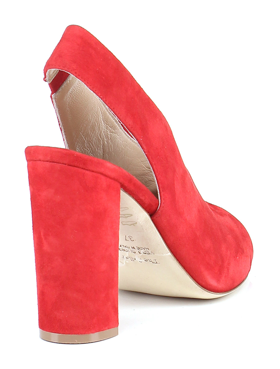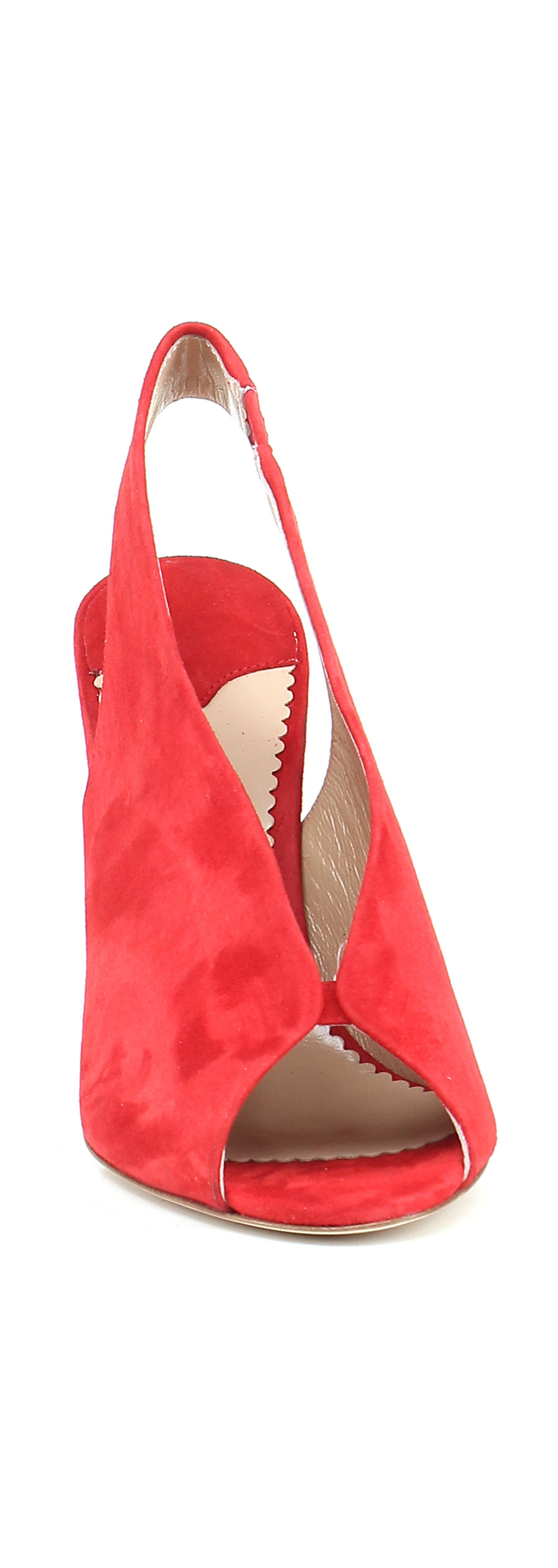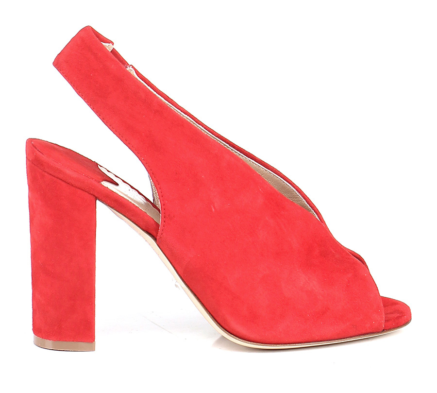 Sandalo alto in camoscio con cinturino su retro e suola in cuoio. Tacco 110.