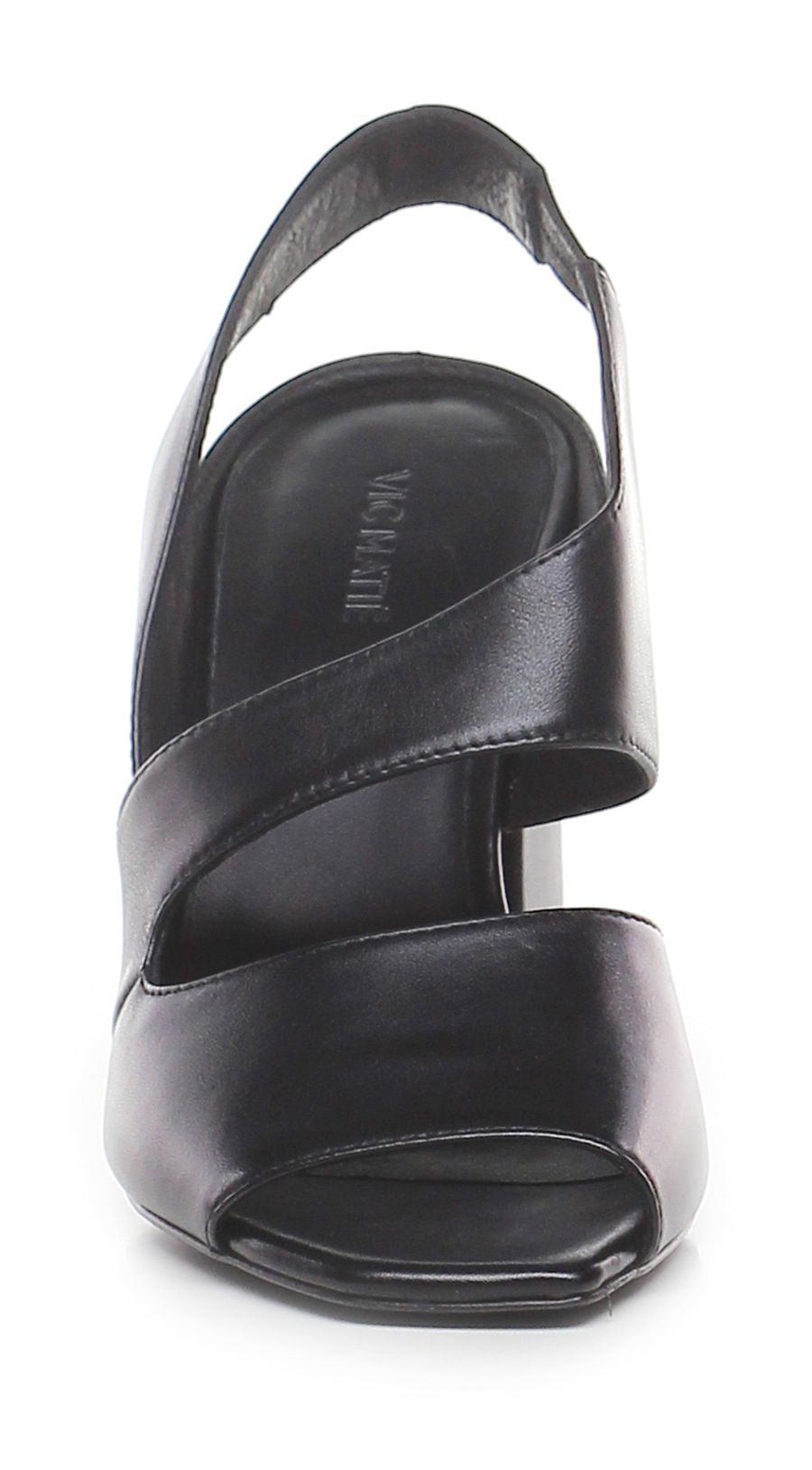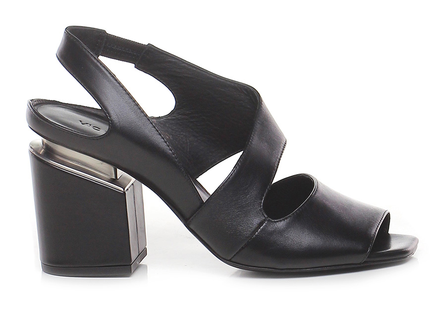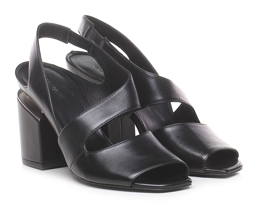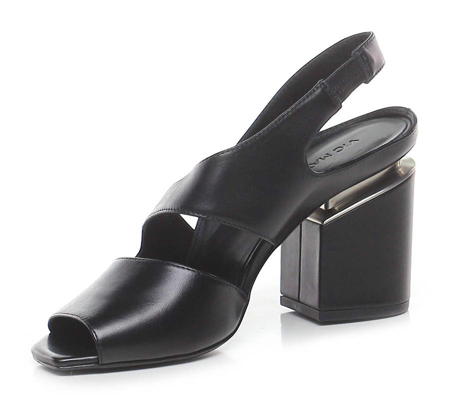 Sandalo in pelle con cinturino sul retro con inserto elasticizzato lato interno. Tacco 100, rivestito in pelle con inserto effetto metallo.