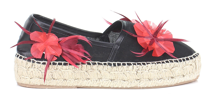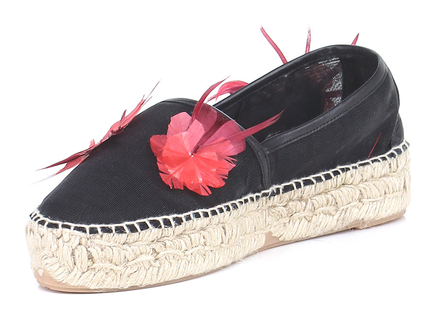 Scarpa bassa in tessuto a retina con applicazione tessuto su tomaia e suola in gomma. Tacco 35, suola foderata in corda.